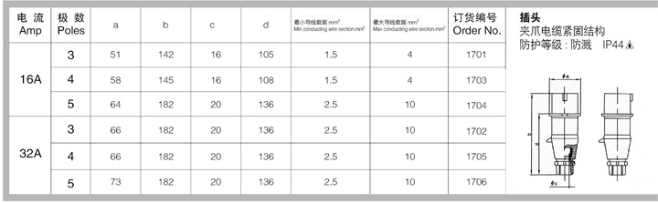 产品类型:A-tech 工业连接器 > IP44工业插头
